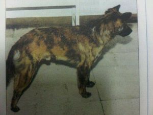 Kepala bagian atas lebar dengan dahi dan pipi datar, moncong proporsional dan kuat terhadap ukuran bentuk kepala, rahang tampak kuat dan kompak, memiliki gigi-gigi kuat dengan gerakan gigi seperti menggunting, bibir berwama hitam atau cokelat tua. Telinganya tebal, kuat, berdiri berbentuk “V” terbalik dengan ujung agak membulat. Jarak antara kedua telinga cukup lebar, panjang telinga kurang lebih sama bila dibandingkan dengan jarak antara dasar dua telinga bagian dalam dengan sudut mata luar.